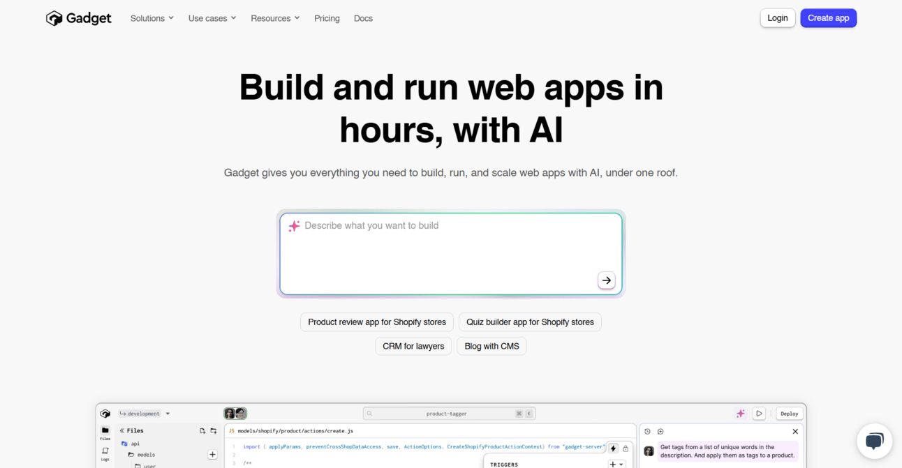 Core features: Best-in-class infrastructure for building modern web apps, Built-in integrations for common features like auth, or third party API connectors, An IDE that has everything you need to code, debug, and deploy, An assistant that has all the content, capabilities and conventions to do it all for you.