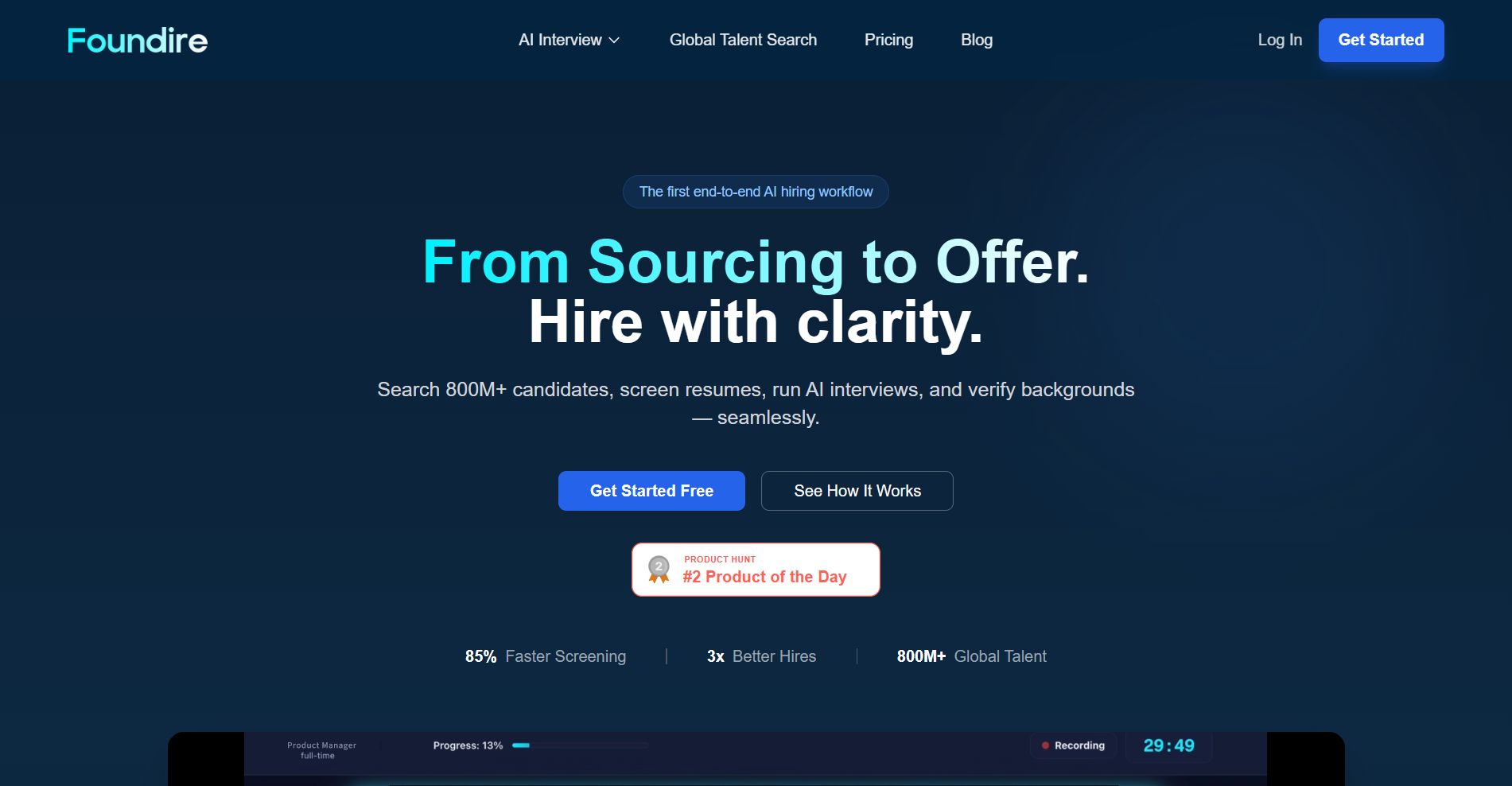 Core features: helps teams scale hiring with global talent search, resume scoring, and adaptive AI interviews that generate decision-ready scorecards with transcripts. In live interviews, the interview copilot gives real-time prompts, follow-up suggestions, and structured notes — all connected in one workflow from sourcing to offers and background checks