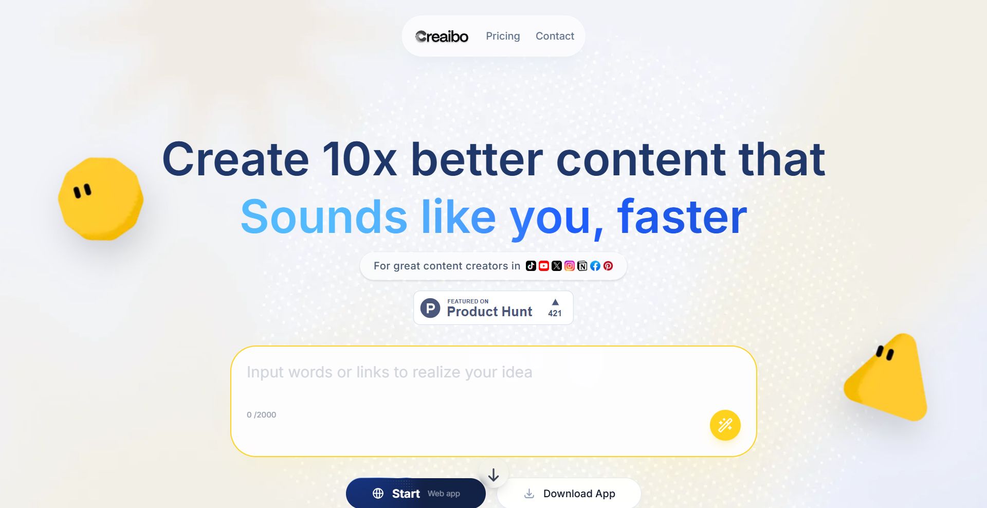 Core features: AI-native integrated creation space that supports entire workflow—from initial idea and structured framing to ready-to-use content. Built for original content creators who refuse generic, robotic output, it helps you preserve and scale your unique creativity. Creaibo solves a core problem: significantly boosts creative efficiency and content quality, while maintaining consistent style