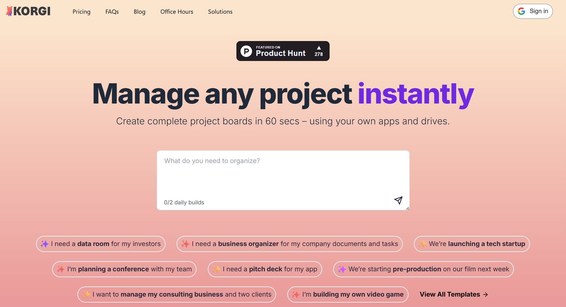 Core features: connects your scattered productivity stack in a single project management app. AI generates your project board with content, steps, and links in less than a minute. You take action while Korgi creates, shares, and launches assets in a click, using your own apps and drives (Google, Microsoft, Zoom, and more), with integrated chat and AI. Deliver finished boards as formatted files instantly