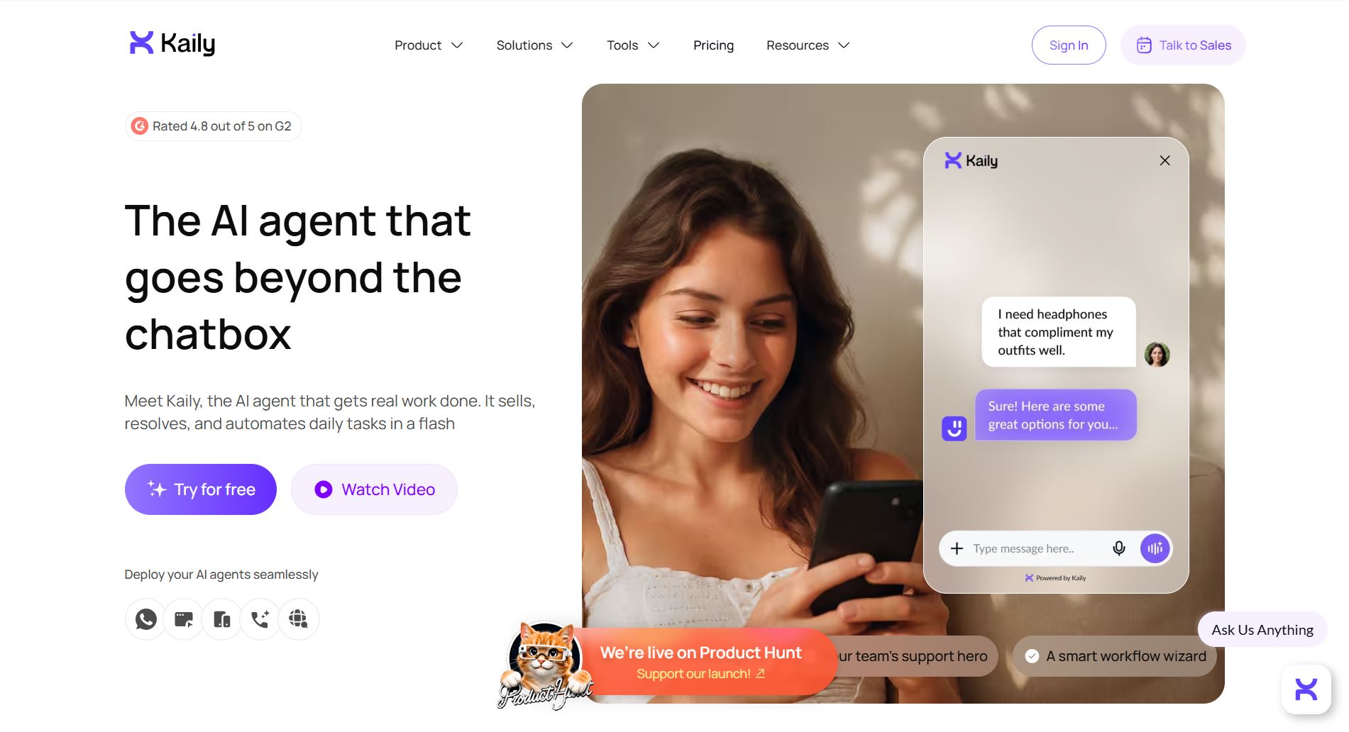 Core features: AI teammate that automates every customer conversation. Handle support, sales, onboarding, bookings, and more across web, mobile, WhatsApp, Slack, email, voice, and video. Start in minutes with premade templates, train on your data, deploy everywhere. Operates in 90+ languages.
