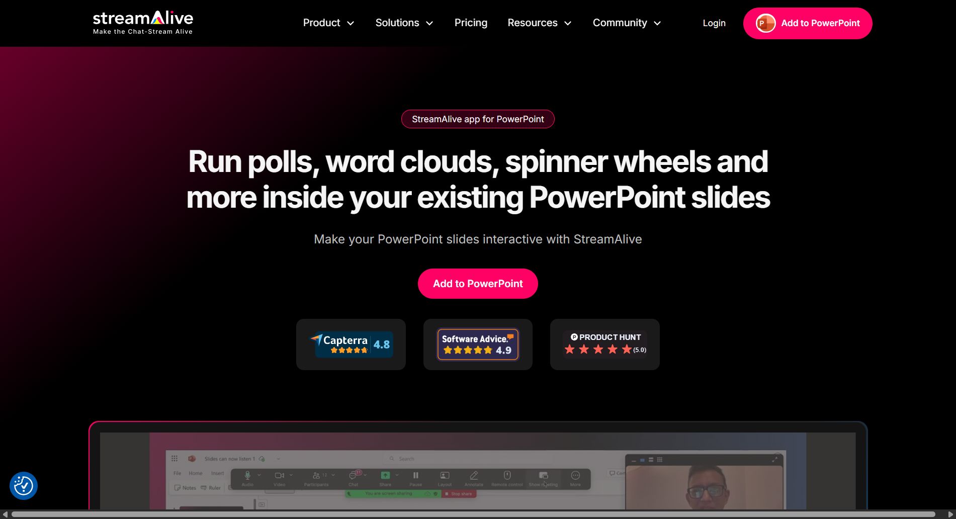 Description: Chat-powered polls, word clouds, quizzes for your PPT slides