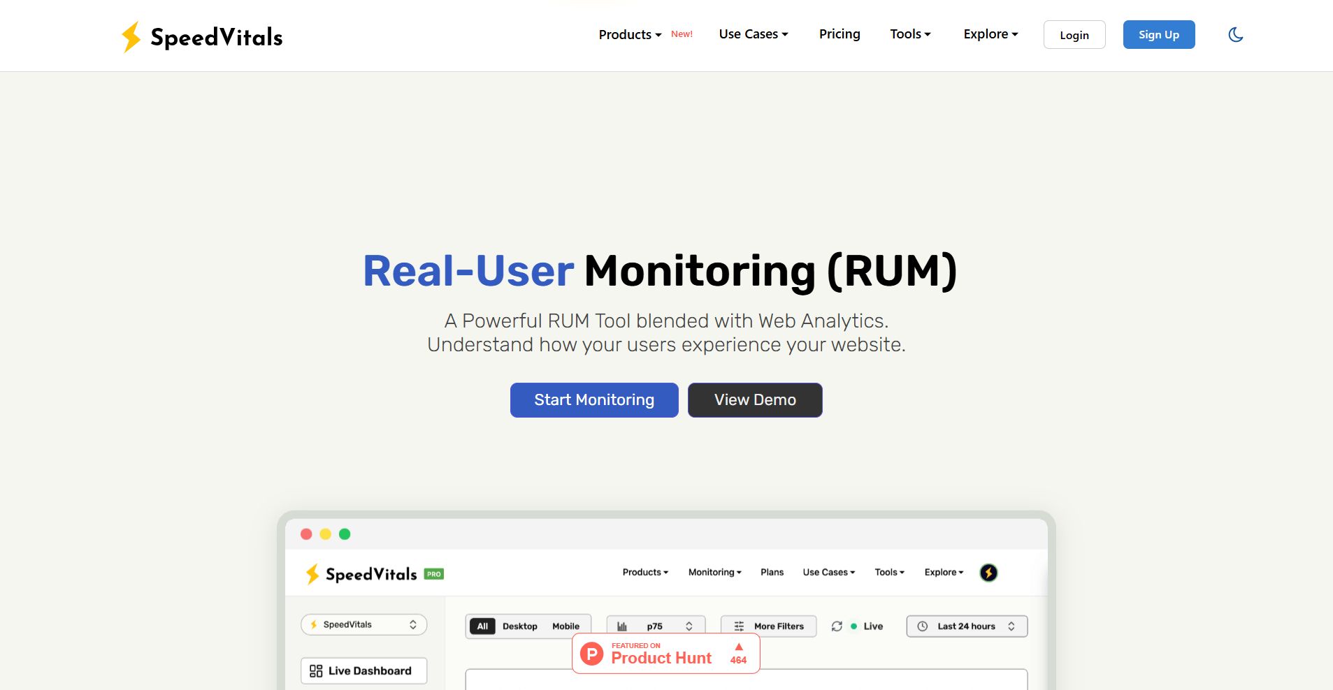 Core features: Monitor Core Web Vitals (LCP, CLS, INP) of your visitors in real-time without a 28-day delay, SpeedVitals RUM captures elements or interactions causing a high CLS, LCP, and INP. This helps in understanding the root cause of the issue, and more.