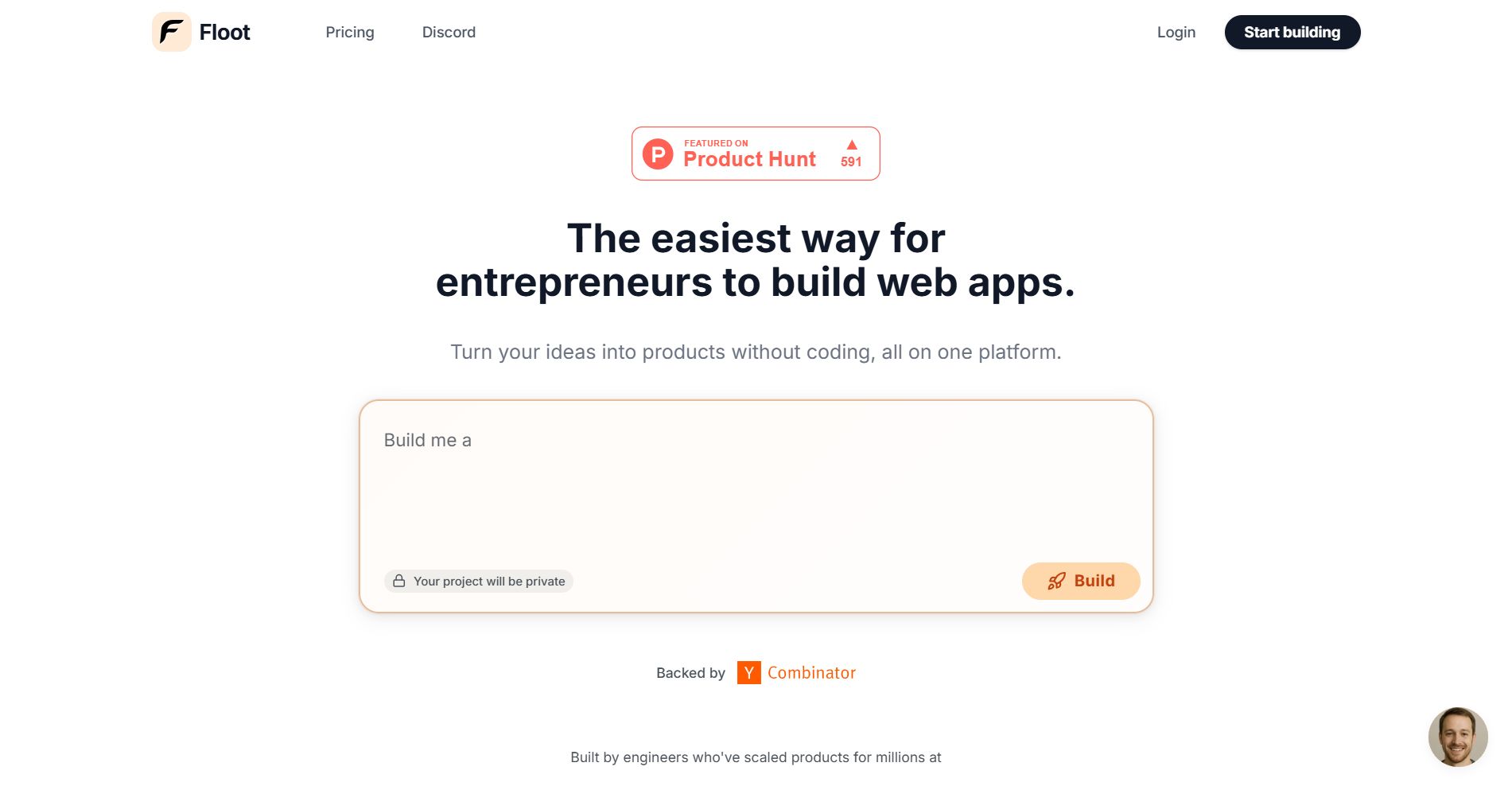 Core features: Describe your idea and Floot builds a complete app or website for you with AI. No need to code, Circle what you want to change. Draw arrows where things should move. Perfect when you need more than words, and more.