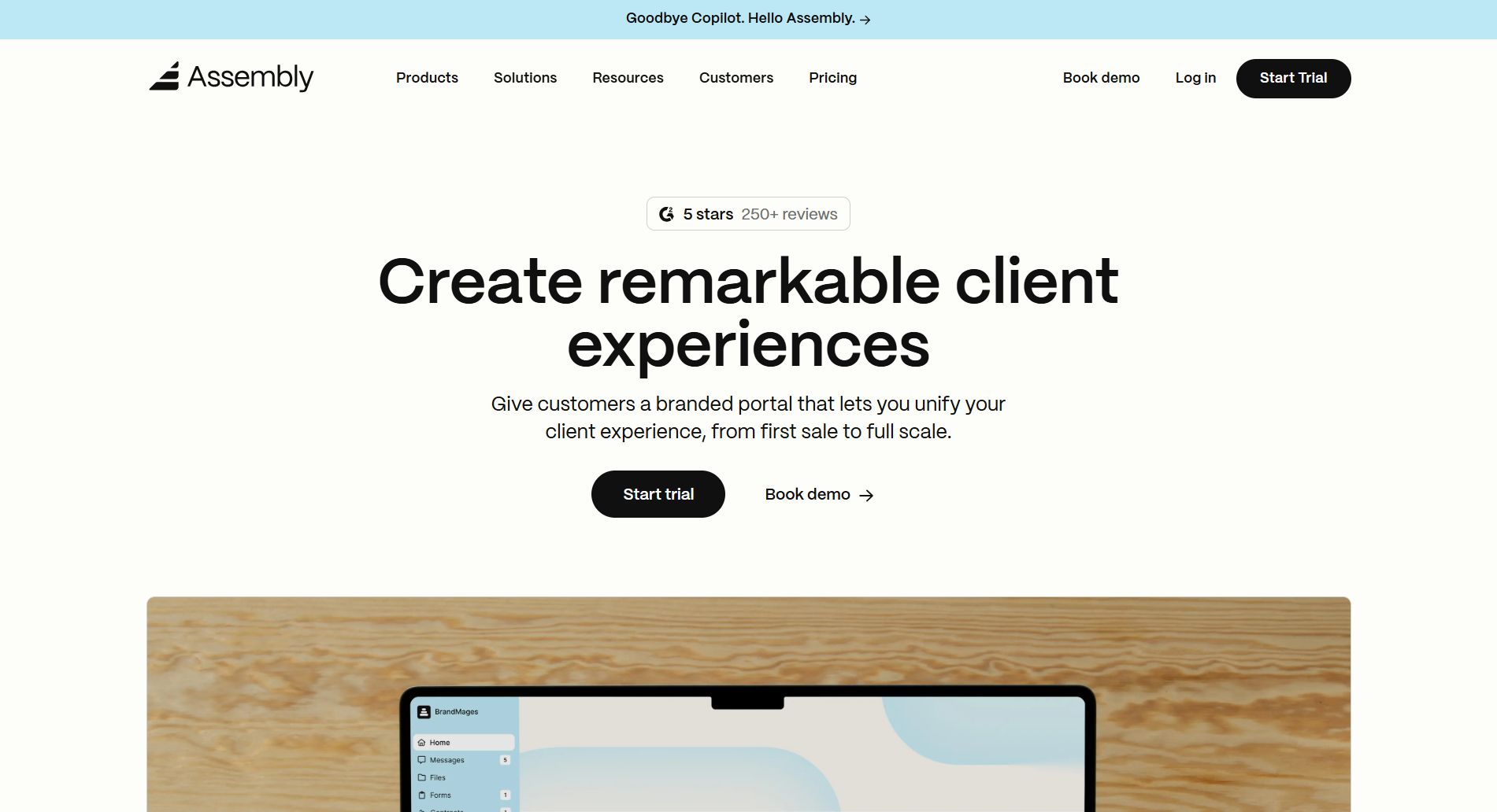 Core features: Create remarkable customer experiences with Assembly (formerly Copilot). Get an out-of-the box branded client portal where customers can message you, pay bills, and share information securely, with a new AI-powered CRM for your team.