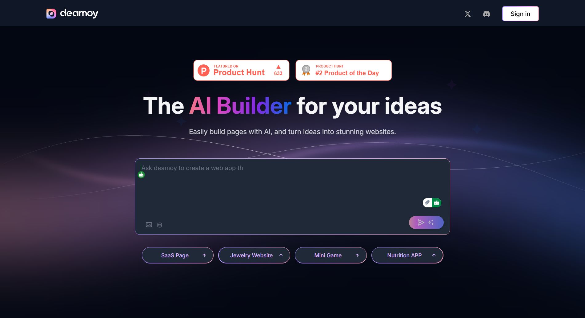 Core features: Inspired by Figma’s craft and Lovable’s magic, Deamoy fuses the best of both: streamable JIT rendering, AI and visual edits in perfect sync, and editable sites from a single prompt in seconds.