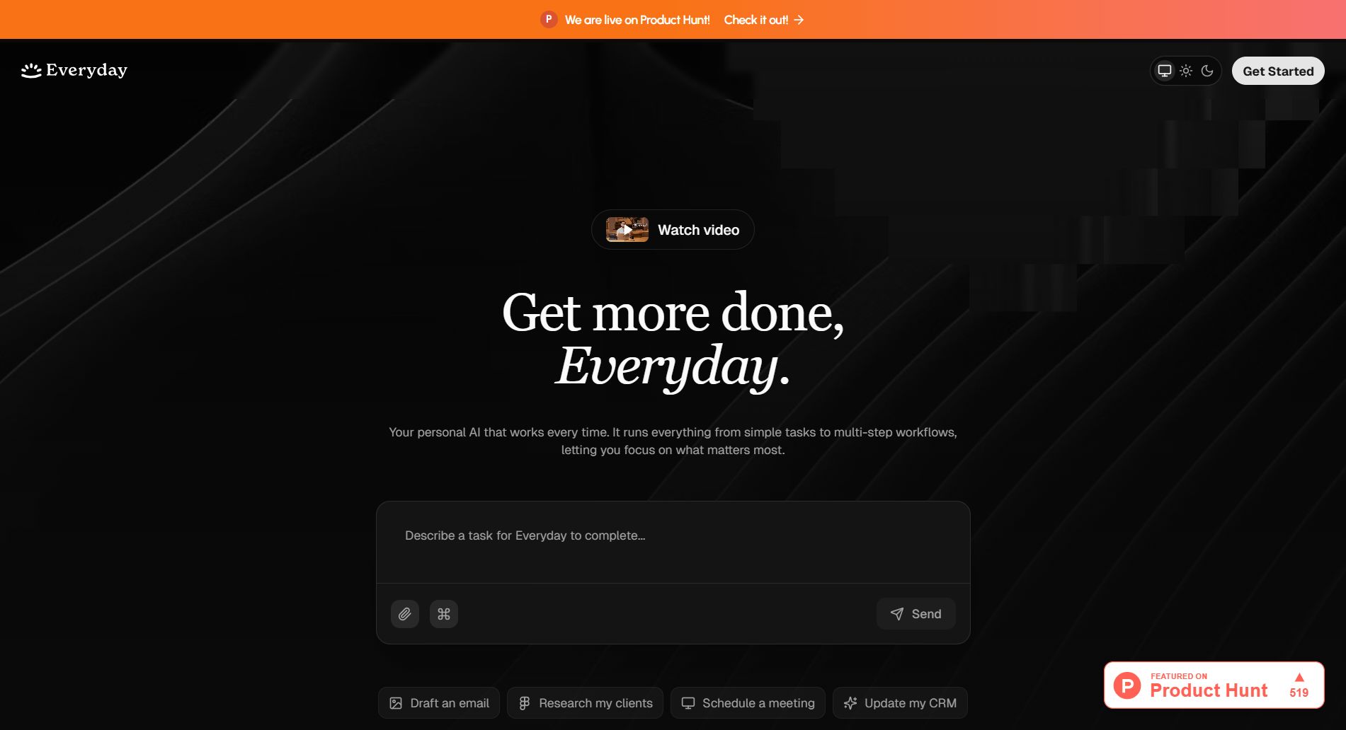 Core features: Easiest way to complete tasks across your favorite tools. Describe what you need, and Everyday handles it for you.