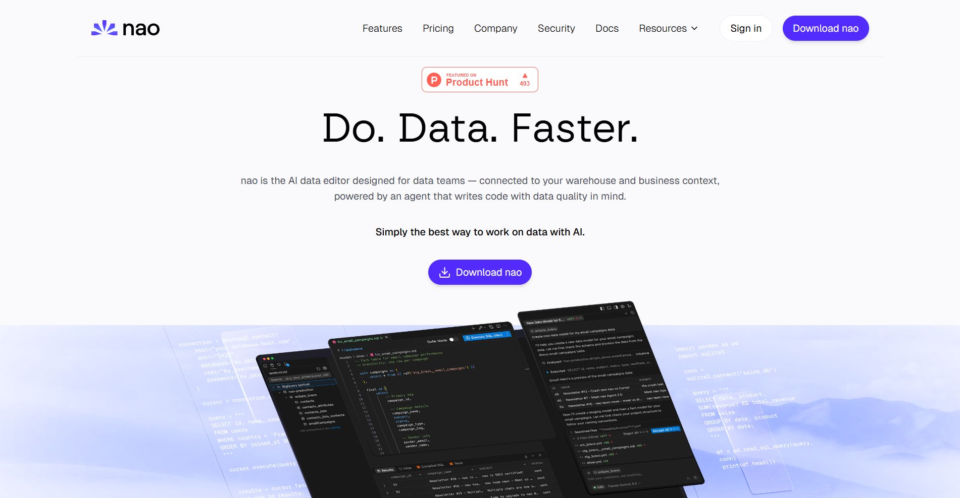 Core features: AI powered data IDE for analysts, engineers, and scientists to write SQL, Python, or dbt workflows, preview changes, catch issues early, and deploy confidently. It connects directly to your warehouse and understands your schema so you can build faster, fix fewer bugs, and maintain trust in your data. Build data pipelines, launch quality checks, run analytics, and collaborate across teams without context switching